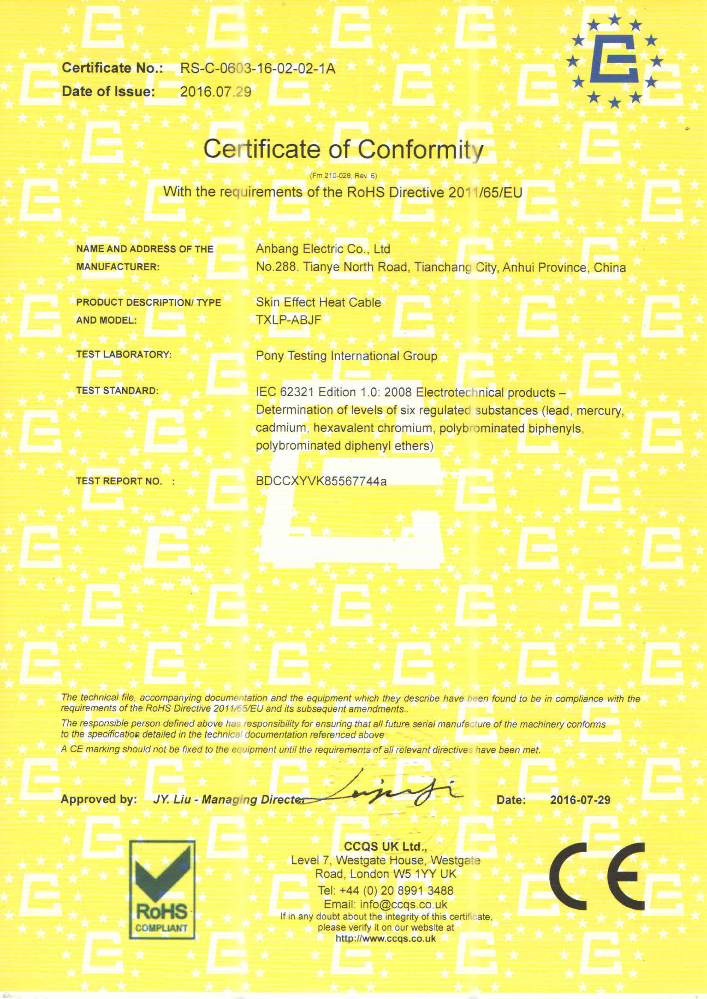 安邦電氣股份有限公司,總部位于北京市長安街,成立于2004年,注冊(cè)資金10088萬。安徽生產(chǎn)基地占地面積63000平方米,擁有66套各類生產(chǎn)線,其中進(jìn)口生產(chǎn)線6套。國家高新技術(shù)型企業(yè),滁州市市長質(zhì)量獎(jiǎng)企業(yè),專精特新“小巨人”企業(yè),擁有國家知識(shí)產(chǎn)權(quán)局授權(quán)的45項(xiàng)專利,其中發(fā)明專利28項(xiàng) , 主筆《太陽能熱利用自限溫電熱帶安裝規(guī)范》行業(yè)標(biāo)準(zhǔn),參編《自限溫電伴熱帶》國家標(biāo)準(zhǔn)、《工業(yè)和商業(yè)用電阻式伴熱系統(tǒng)》國家標(biāo)準(zhǔn)、《太陽能熱利用自限溫電熱帶》行業(yè)標(biāo)準(zhǔn)、《爆炸性環(huán)境 電阻式伴熱器》國家標(biāo)準(zhǔn)等7項(xiàng)國家標(biāo)準(zhǔn)。企業(yè)通過UL認(rèn)證,國家強(qiáng)制性 CCC產(chǎn)品認(rèn)證,ISO9001質(zhì)量管理體系認(rèn)證,ISO14001環(huán)境管理體系認(rèn)證,ISO45001職業(yè)健康安全管理體系認(rèn)證,Q/SHS0001.1健康、安全與環(huán)境管理體系認(rèn)證,歐盟防爆ATEX認(rèn)證,歐盟CE認(rèn)證,RoHS認(rèn)證,俄羅斯海關(guān)聯(lián)盟認(rèn)證,國家防爆電氣CCC證書。產(chǎn)品系列:集膚伴熱系統(tǒng)、電伴熱系統(tǒng)、電加熱器、電地暖系統(tǒng)、集儀器儀表、電線電纜、高低壓配電柜(箱)、電纜橋架、閥門管件等等設(shè)計(jì)、制造、銷售。產(chǎn)品應(yīng)用于航天航空、軍工、石油、石化、天然氣、機(jī)場(chǎng)、化工、鋼鐵、隧道、消防、養(yǎng)殖、融雪化冰、室內(nèi)供暖、國家電網(wǎng)及眾多電廠等等國家重點(diǎn)工程。出口美國、英國、德國、俄羅斯、韓國、日本、哈薩克斯坦、烏克蘭、伊朗等眾多國家。